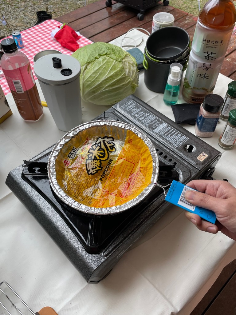 那時逢寒流,天氣很冷,氣溫說是接近零度。這次準備了很多木材,我們醒著時候,焚火台的火幾乎不曾熄滅。夥伴喜歡生火的過程,也喜歡觀察火,可以就靜靜看著那些火焰安靜一下午。另外在「烤玉米」、「烤地瓜」的過程中,也就不感覺冷了。