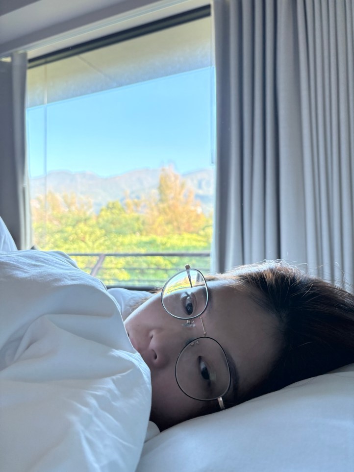 房間大小不算大,格局上比較特別的是鏡子竟然是在床的正前方。但這些都瑕不掩瑜,因為一開門映入眼簾的山景是真的很美,第一眼會覺得不足為奇,但接著再看就會發現這個景色很吸引目光。