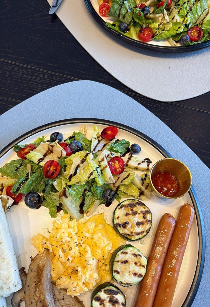 一進到我們的房型,我就直呼:「好可愛!」可能是溫暖的橘色打動了我,也可能是整體的軟裝搭配就是給人很和諧的感覺。房間還有一個大露臺,讓整個空間看起來更寬敞了。浴室配的是免治馬桶和乾濕分離的大淋浴間。